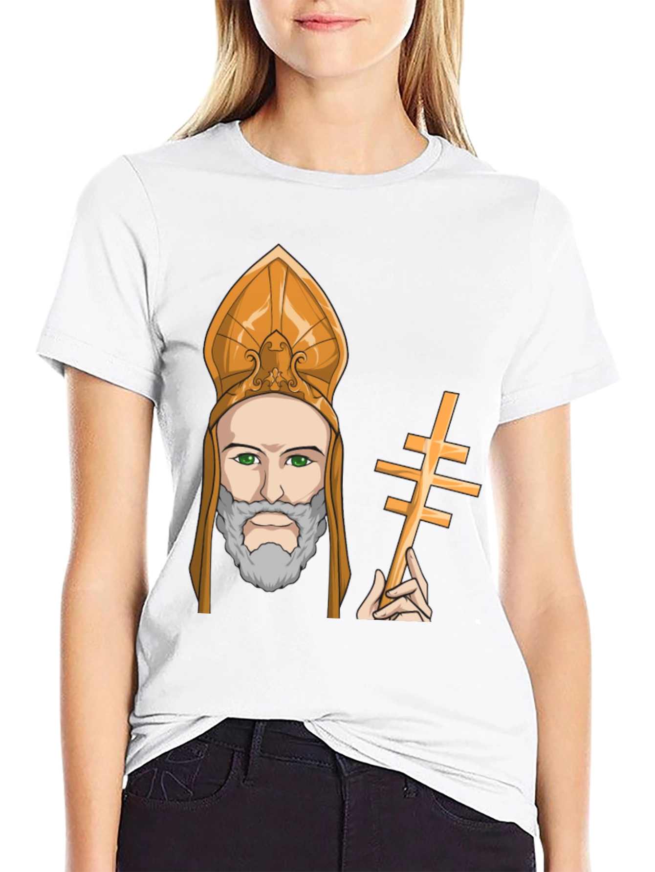Elevate your style with this unique men's black t-shirt featuring a captivating graphic. The design showcases a bishop-like figure with a golden headpiece and holding a double cross. This eye-catching tee is made from comfortable, breathable fabric, perfect for everyday wear. The detailed graphic makes this shirt a standout piece, ideal for expressing your individuality or as a conversation starter. Whether you're a fan of religious art, or simply appreciate unique designs, this t-shirt is sure to impress. Pair it with jeans or shorts for a casual yet stylish look. A great addition to any wardrobe!