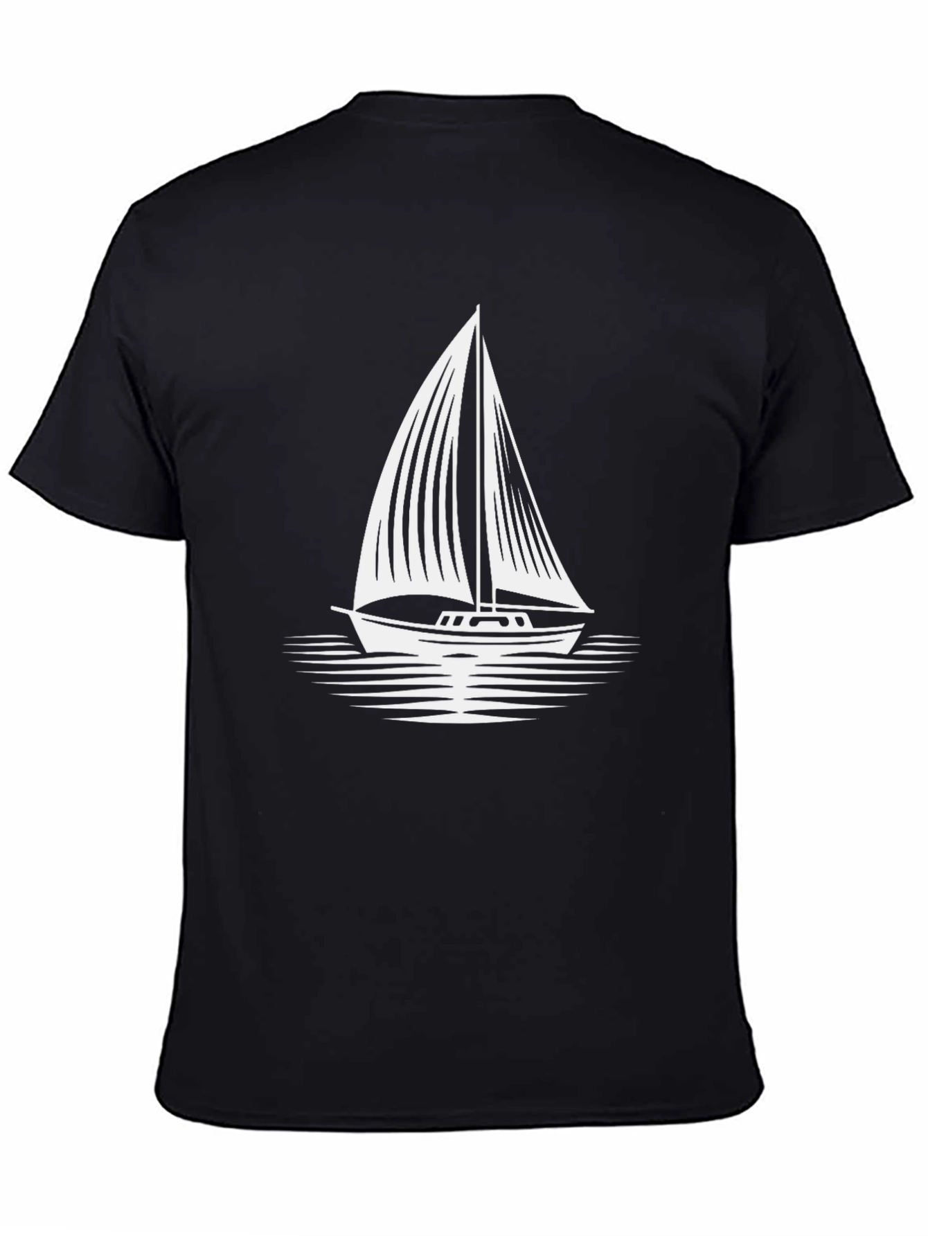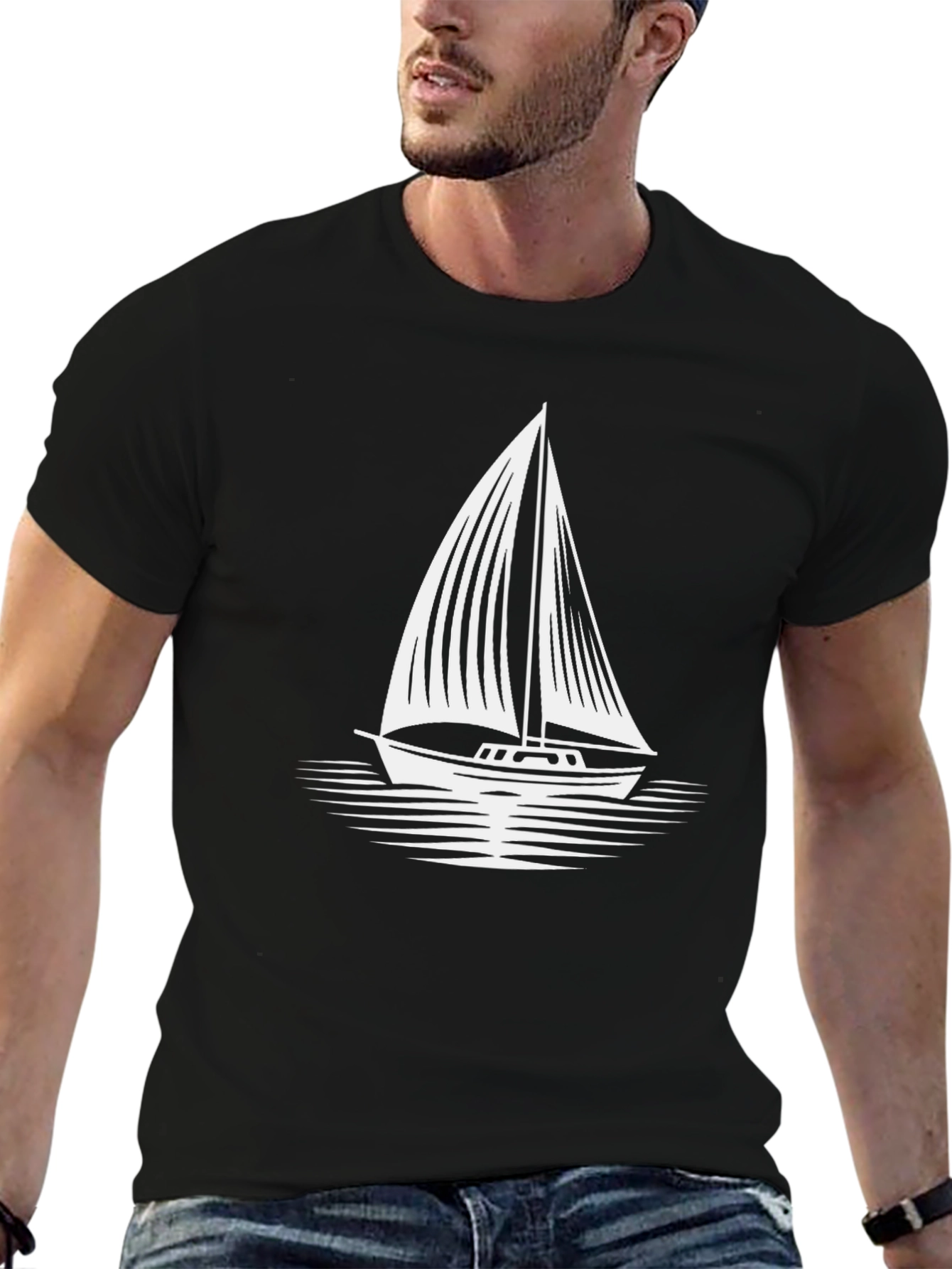 Set sail in style with this classic black t-shirt featuring a striking white sailboat graphic. Made from comfortable cotton, this tee offers a relaxed fit perfect for everyday wear. The detailed sailboat design adds a touch of nautical charm to your wardrobe. Ideal for casual outings, beach days, or simply expressing your love for the sea. This versatile t-shirt pairs effortlessly with jeans, shorts, or chinos. Its soft fabric and breathable construction ensure all-day comfort. A must-have for anyone seeking a blend of style and comfort.