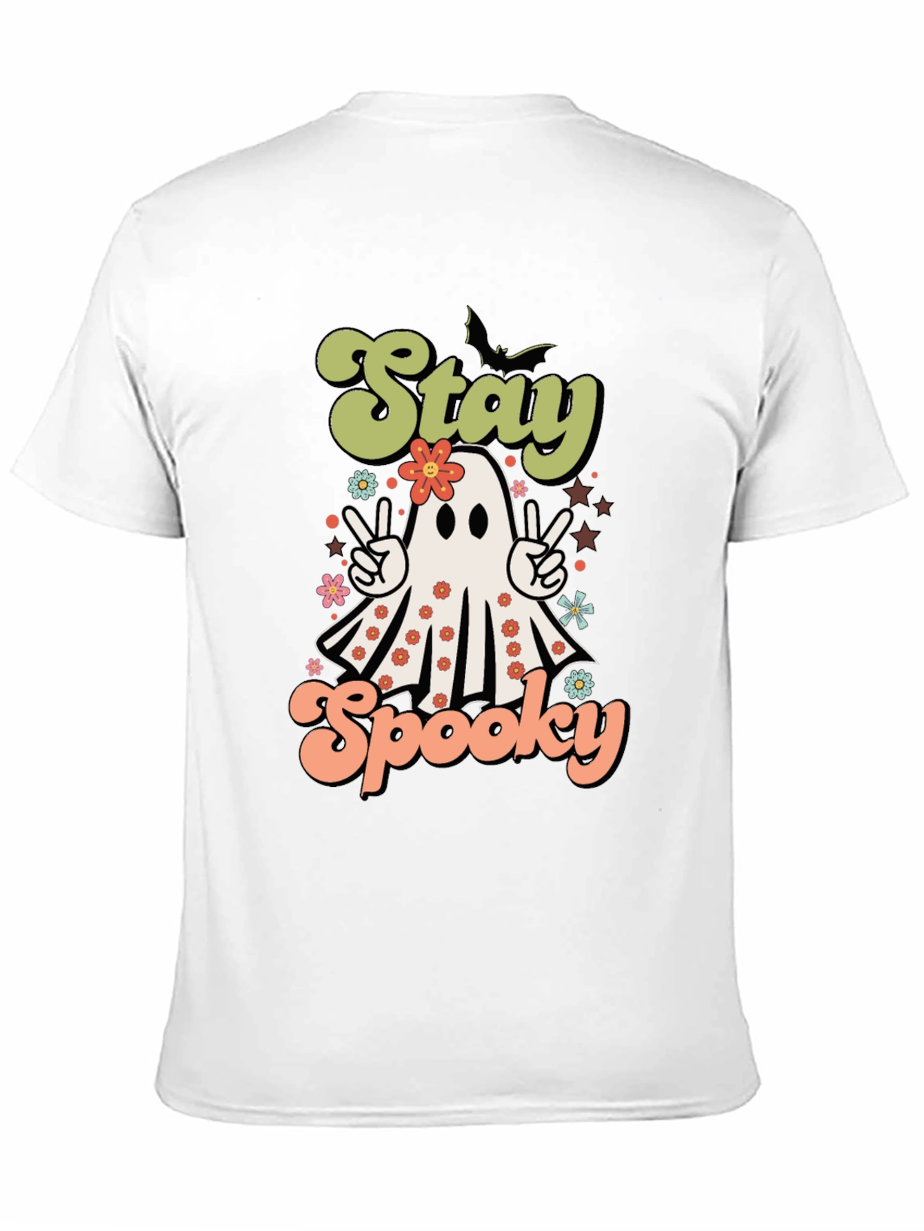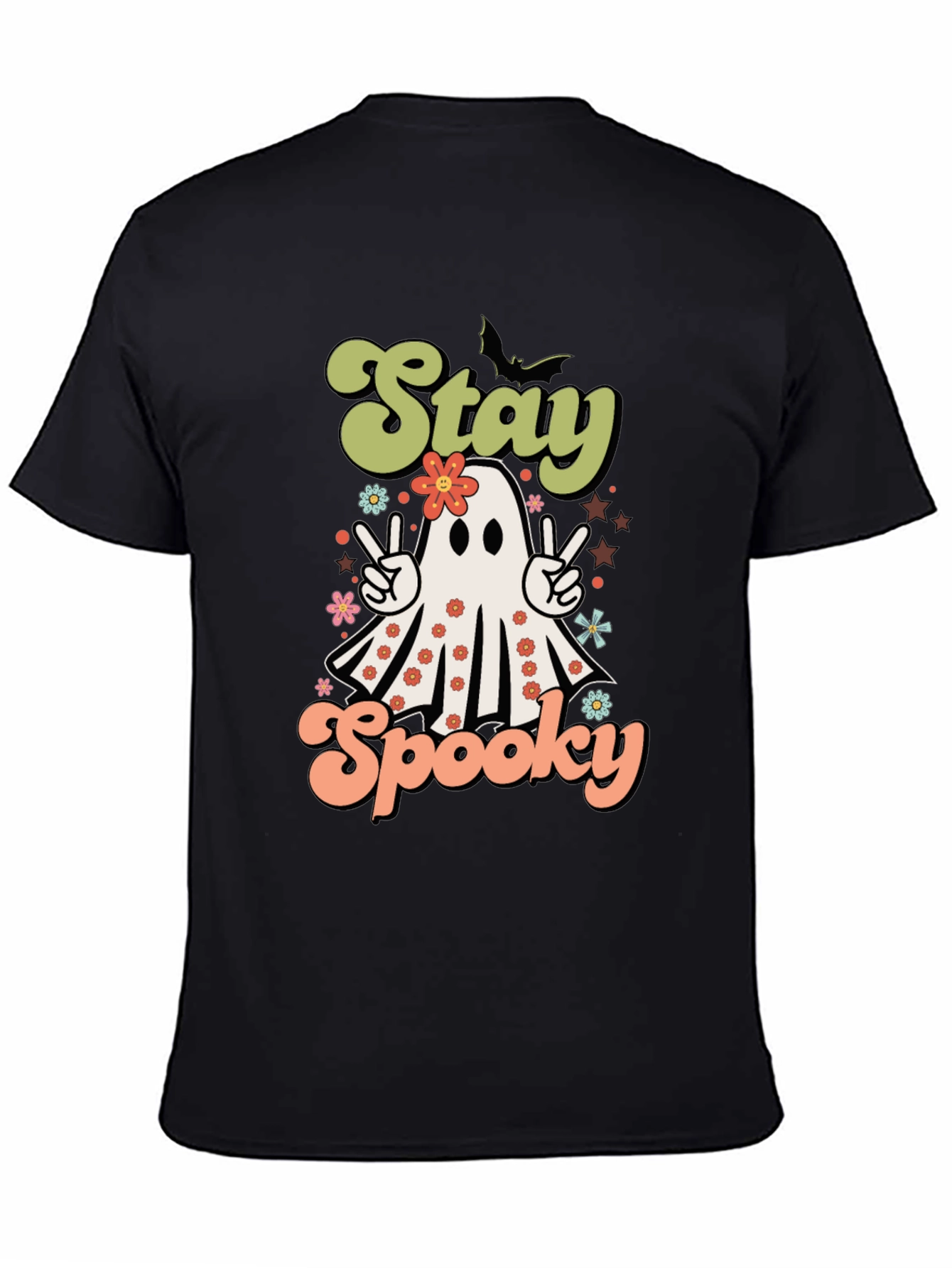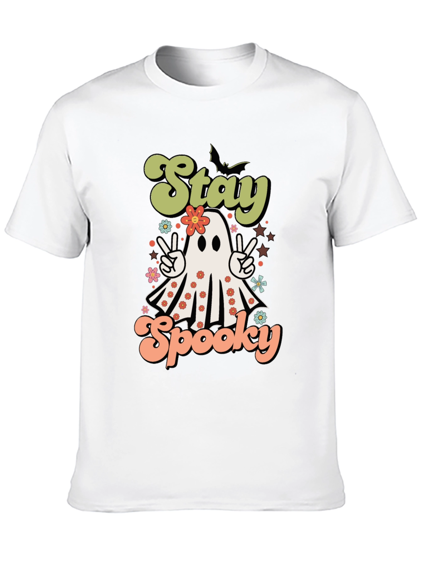 Get ready for Halloween with this retro-inspired t-shirt! Featuring a charming ghost graphic adorned with flowers, this tee brings a playful spooky vibe. The text "Stay Spooky" adds a fun touch. Made from a comfortable material, this black t-shirt is perfect for casual wear during the Halloween season or any time you want to express your love for the supernatural. Pair it with jeans for a laid-back look, or dress it up with a jacket for a Halloween party. A must-have for anyone who loves Halloween!